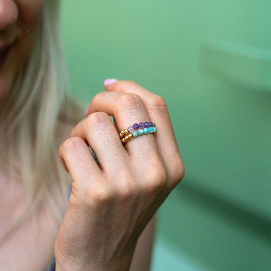 Ringe vergoldet 2er Set - Sterling Silber 925 mit Amazonit & Amethyst