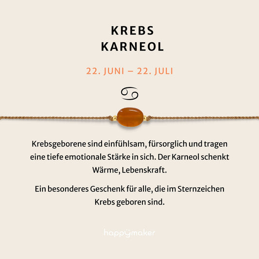 Geburtsstein Armband Juli Krebs mit echtem Karneol