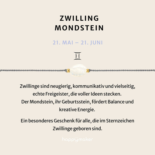 Geburtsstein Armband Juni Zwilling mit echtem Mondstein