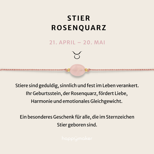 Geburtsstein Armband Mai für Stier mit echtem Rosenquarz