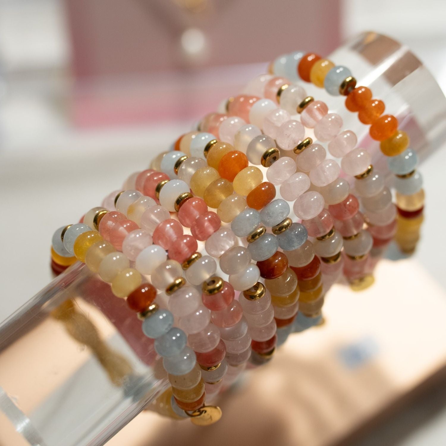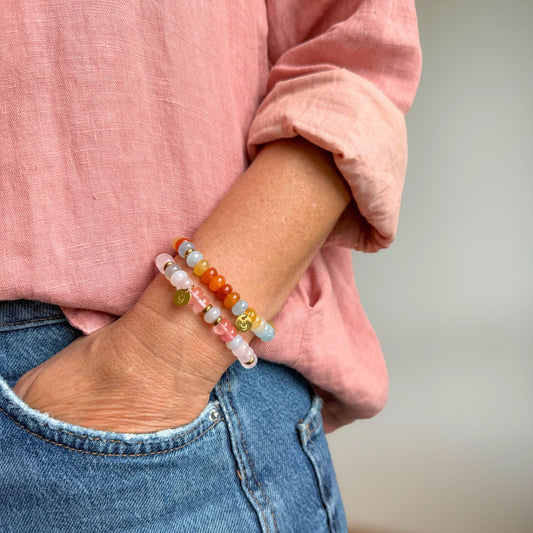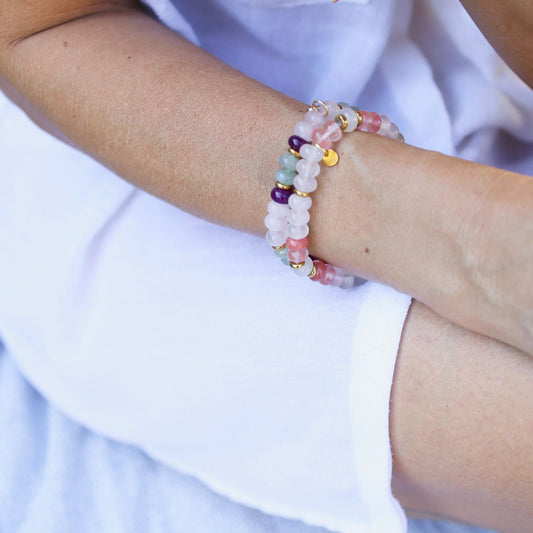 Edelstein Perlenarmband - Rosenquarz, Mondstein und Erdbeerquarz
