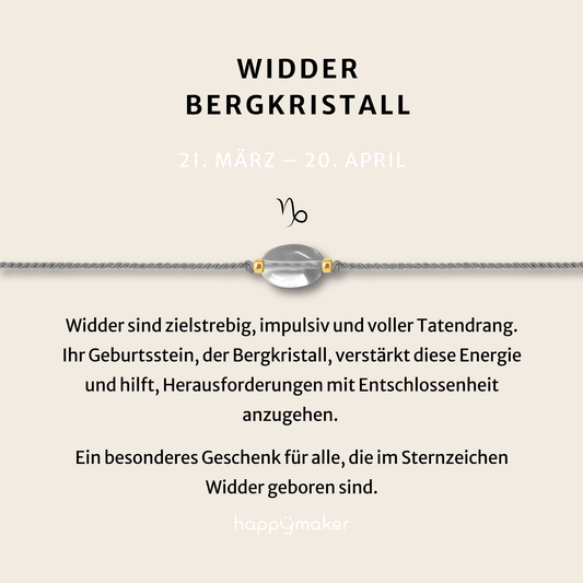 Geburtsstein Armband April für Widder mit echtem Bergkristall