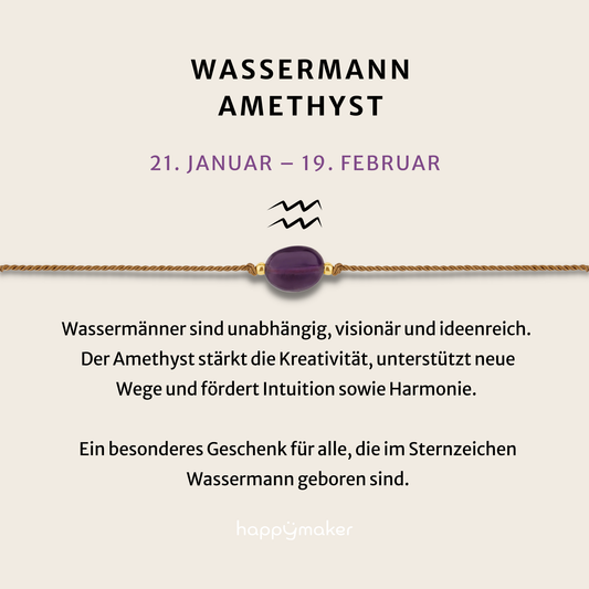 Geburtsstein Armband Februar für Wassermann mit echtem Amethyst