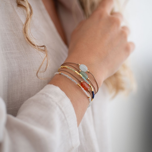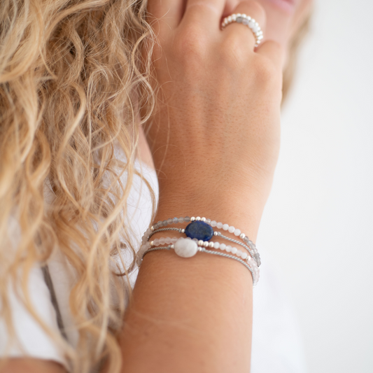 Unsere Kollektion umfasst ein stilvolles Armband mit Silberperlen sowie einen edlen, vergoldeten Armreif mit Lapislazuli. Die Steine stammen aus sorgfältig ausgewählten Minen und werden in Indien von Hand geschliffen, um ihre natürliche Schönheit optimal zur Geltung zu bringen. Jedes Schmuckstück wird in Deutschland mit höchster Präzision gefertigt – für eine harmonische Kombination aus hochwertigem Design und einzigartiger Symbolkraft.