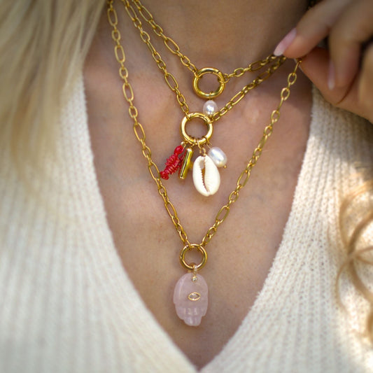 Gold Kette mit Anhänger – Rosenquarz Charm, vergoldet & erweiterbar