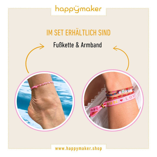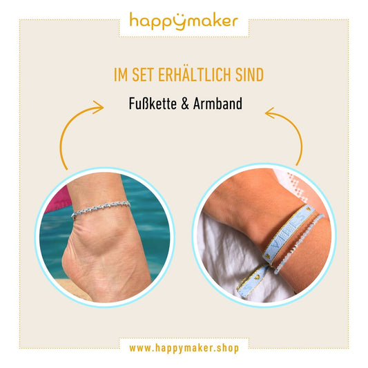 Fußkette und Statemenarmband - Good Vibes hell blau