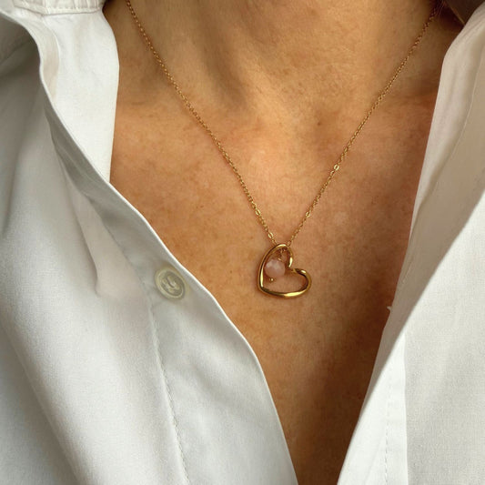 Gold Kette mit Anhänger - Herz & Mondstein