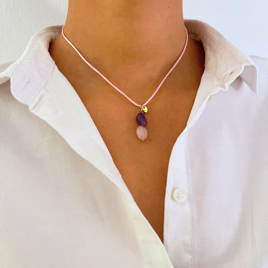 Rosenquarz Halskette mit Amethyst