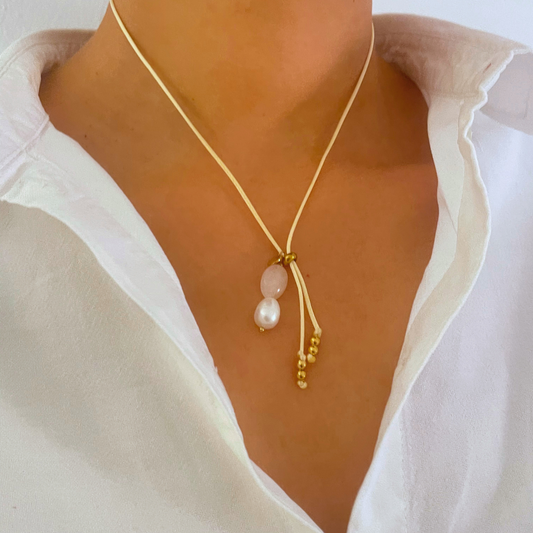 Rosenquarz Halskette mit Süsswasserperle