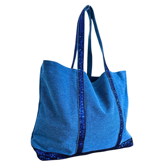 Badetasche XXL - blau-weiss gestreift mit Pompom