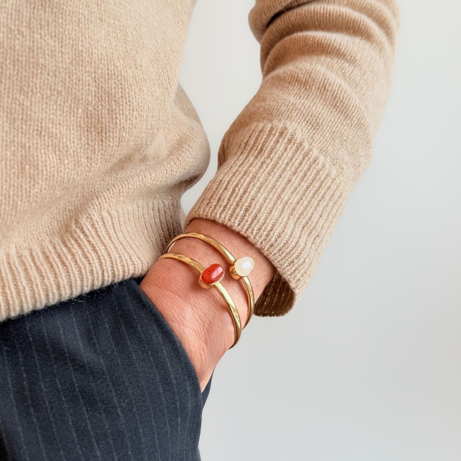 Armreifen vergoldet mit Mondstein – Magischer Schimmer für feminine Stärke