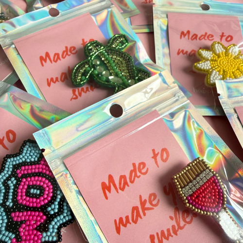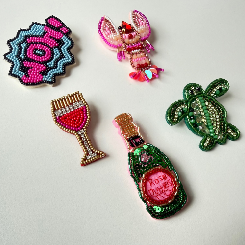 Unsere handgemachten Broschen aus Perlen und Pailletten sind kleine Kunstwerke mit großer Wirkung. Ob frech, verspielt oder elegant – such Dir Deinen Lieblingsbegleiter aus und setz ein stylisches Statement.